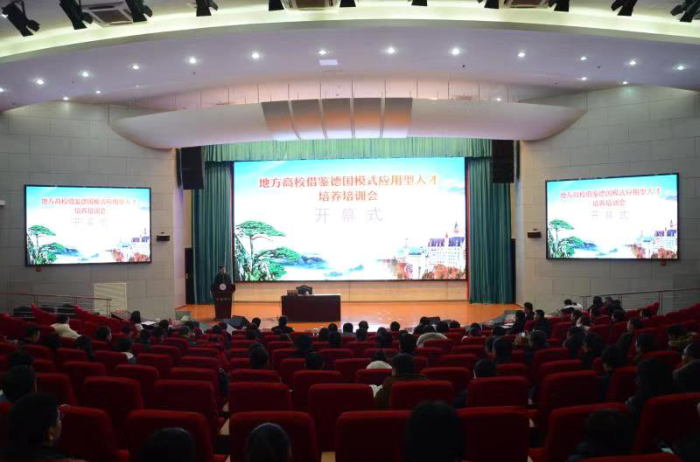 1月9日上午,與會代表在參觀中德教育合作三十周年展后,在圖書館學術報告廳參加了培訓會開幕式。我校各二級學院教學院長、專業負責人及新進教師三百余人到場聆聽。