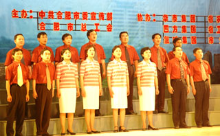 教授、博士、燈光、舞臺,超乎人們的想象。4月23日晚,長江劇院,舞臺、燈光,合肥學院教授、博士合唱隊高歌一曲《年輕的朋友來相會》,尤如空谷回音,震撼和感染著參加“合肥市第三屆職工文化藝術節暨首屆企業文化節開幕式”的每一位與會者。