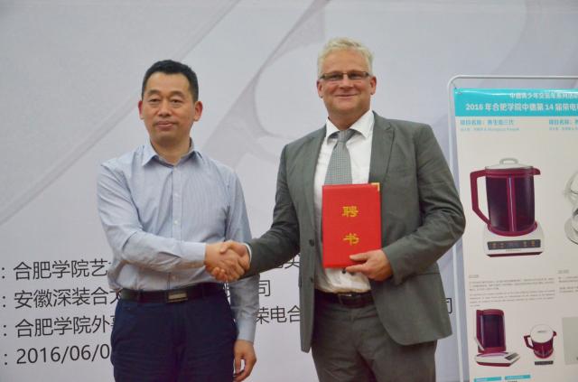 張文兵院長向提斯·克魯格教授頒發了合肥學院客座教授聘任證書。