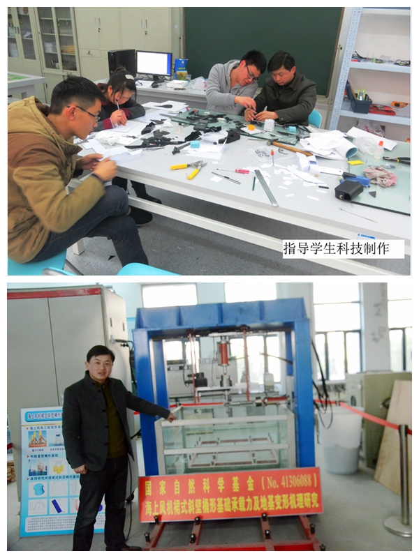 對于采訪,劉金龍顯得有些拘謹,然而當聊到有關科研工作時,他立刻打開了話匣子,向我們介紹了他最新的科研項目:海上風機分段斜壁桶形基礎的承載力研究。風力發電是近年來我國海洋事業發展的一項重點,然而風機對基礎的穩定性要求很高,工程界一直在尋求提高風機基礎承載力特別是水平承載力的措施。針對傳統海上風機桶形基礎,劉金龍提出了多種改進方案,“其實,算不上發明,只能算是在現有技術上的創新吧,我考慮到傳統桶形基礎的側壁主要為豎直面,可不可以將它改為斜面呢?并且還可以分段采用不同的傾角,即上半部分與下半部分采用不同的斜面,這樣可變換出一系列的新構型。”劉金龍十分興奮地描述著自己的想法,果然很快基于理論分析的多種改造方案出爐,相關成果已發表并被EI收錄。