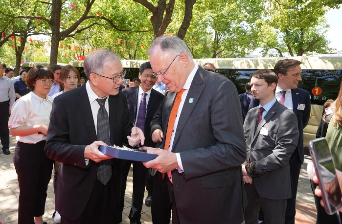 合肥大學黨委書記王其東在中德友誼林前迎接了施特凡?魏爾州長一行。王其東代表學校向魏爾贈送了省州結好三十周年活動影像紀念品。魏爾表示,合肥大學有很多老朋友,對他們為中德人文交流所作出的努力感到自豪。