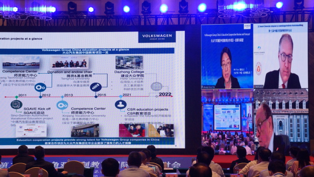 Lou Yi, Seniordirektorin des Volkswagen-Instituts (China) und der Abteilung für Unternehmenskultur und Kommunikation, hielt einen Vortrag mit dem Titel ?überblick und Ausblick der Kooperationsprogramme mit den chinesischen Hochschulen von Volkswagen Group“. Sie gab einen kurzen überblick über die Bildungskooperationen der Volkswagen Group China, die dualen Bildungsprogramme in der Provinz Anhui und die Entwicklung und Besonderheiten des gemeinsam mit der Universit?t Hefei errichteten ?Volkswagen-Instituts“.