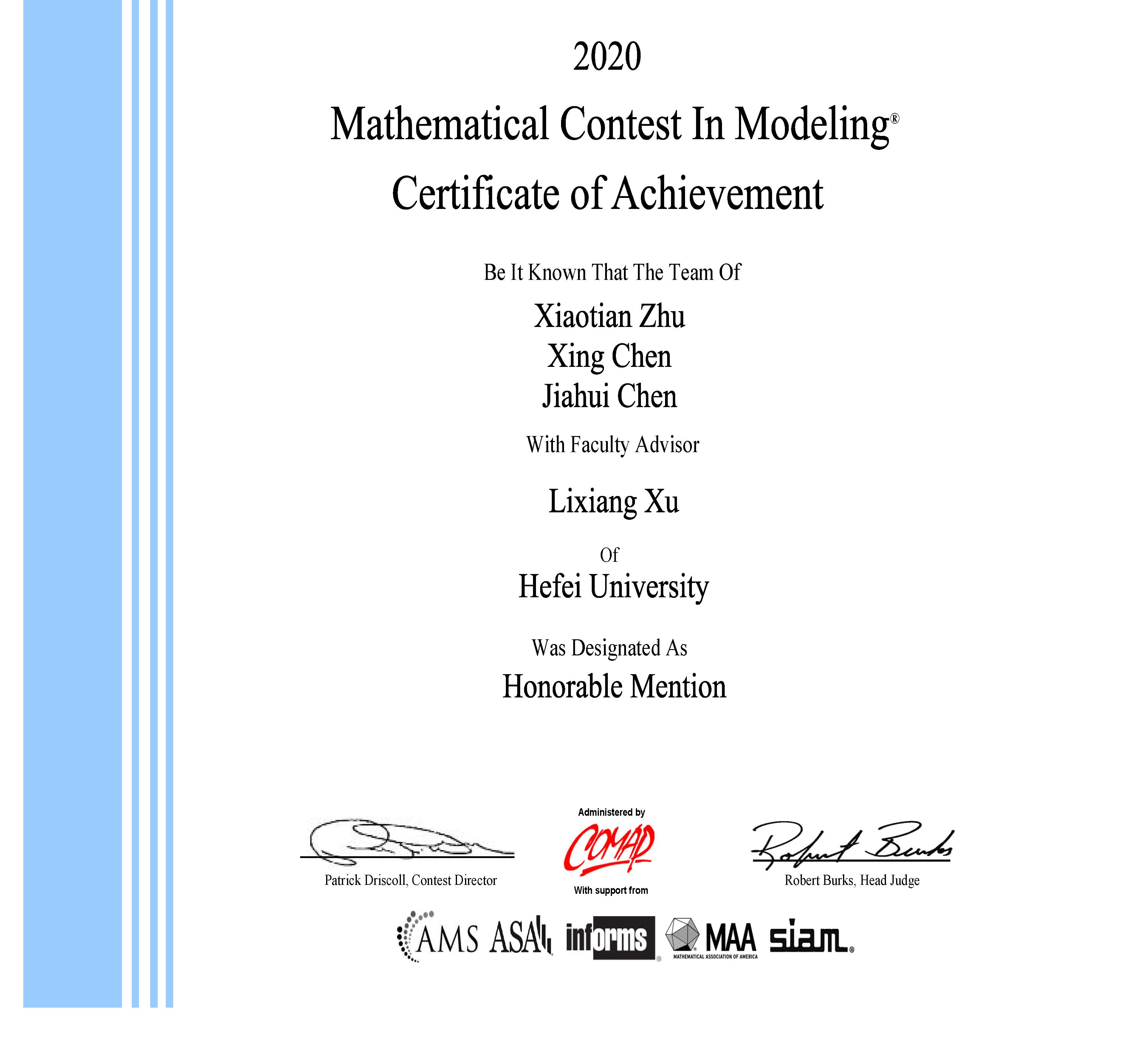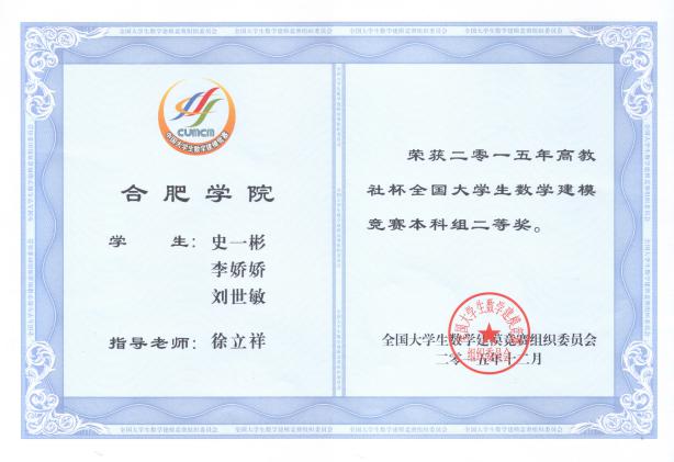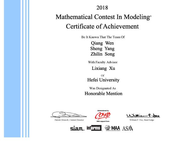 【近幾年合肥學院學子美國大學生數學建模競賽獲獎名單】
