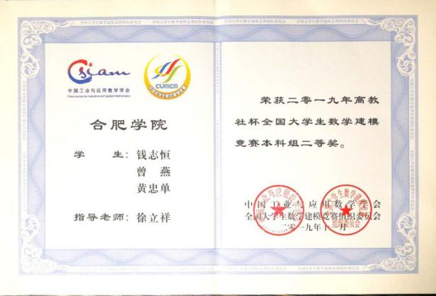 【近幾年合肥學院學子全國大學生數學建模競賽獲獎名單(省一以上獎項名單)】