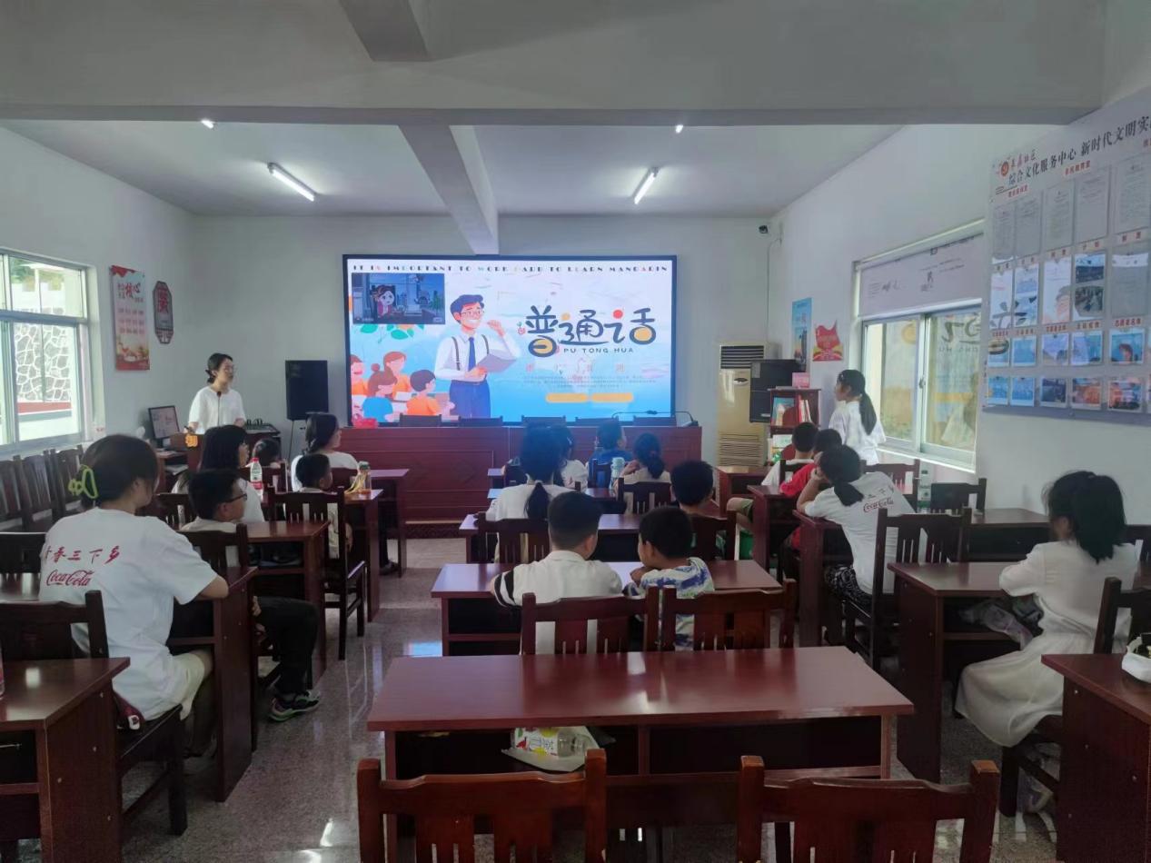 為豐富社區(qū)兒童暑期生活,團隊成員去往多個社區(qū),搭建“七彩課堂”教育平臺。717日下午,來蘇社區(qū)內,科普組的同學發(fā)揮師范類專業(yè)的優(yōu)勢,開展推廣普通話的公益課堂。同學們通過互動式教學和有趣的語言游戲,讓小朋友們在輕松愉悅的氛圍中學習普通話的重要性。
