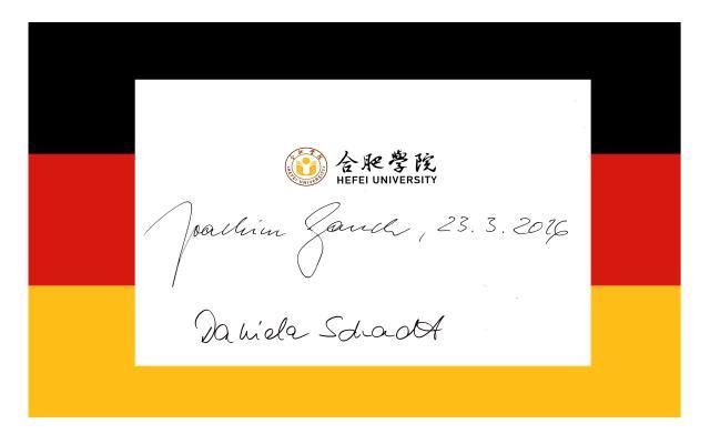 Am 23.03.2016 veranstaltete Bundespr?sident Joachim Gauck beim Deutschen Generalkonsulat in Shanghai einen Empfang, an dem auch, auf dessen Einladung, Prof. Dr. Cai Jingmin, Parteisekret?r der Universit?t Hefei, teilnahm.
