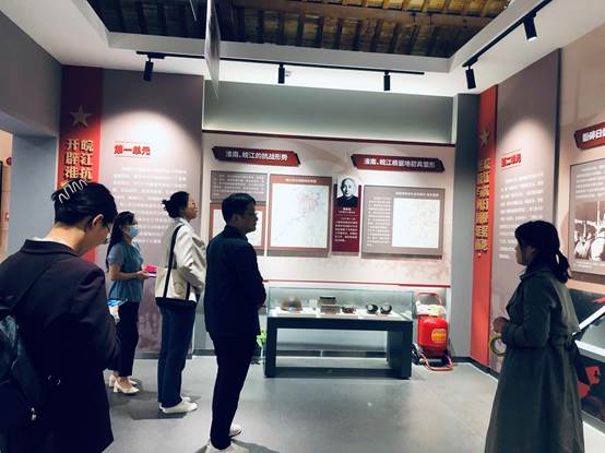 今年是渡江戰役勝利74周年,全體黨員首先來到渡江戰役總前委舊址,接受革命先烈們的精神洗禮,進一步堅定了理想信念。渡江戰役總前委舊址常設展覽6個,其中復原陳列4個,基本陳列1個,專題陳列1個,每年舉辦臨時展覽3個以上。總前委、華東局、秘書處、機要處等舊址皆為復原陳列,參謀處舊址現作為基本陳列展廳,以“風馳瑤崗 劍指江南” 為主題,以渡江戰役歷史進程為主線,展示渡江戰役的歷史概況及總前委、華東局在瑤崗的工作情況。